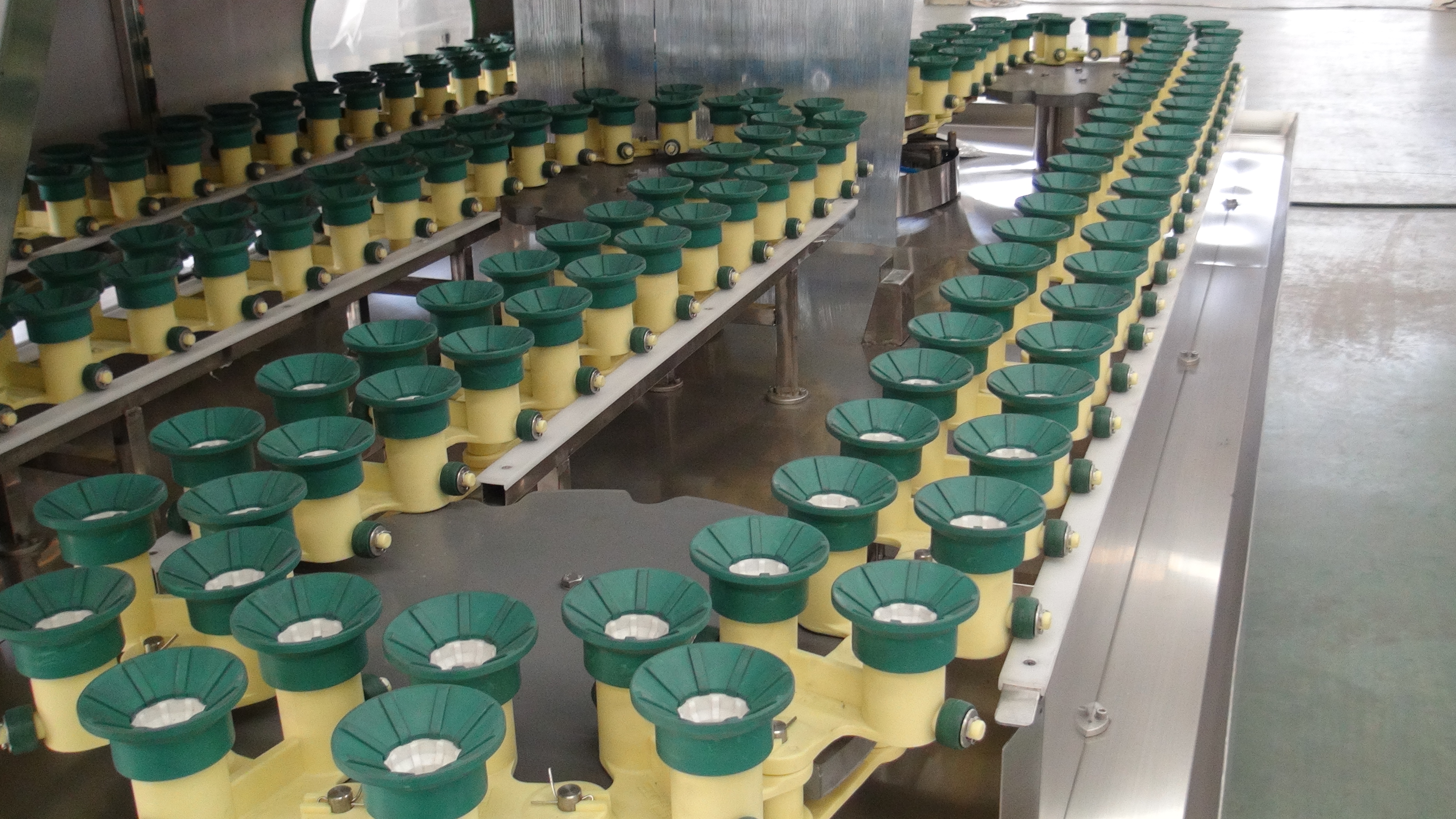 ●節(jié)約水、效率高。沖瓶用水回收過濾,降級使用,且水壓及沖水時間可根據(jù)實際需要量而設定,降低了水耗量。清水輪設有分水區(qū), 無瓶處不噴水,可節(jié)約水源。循環(huán)水和清水輪處配有專用過濾器,使各路水嘴不沾污物,不影響水壓。